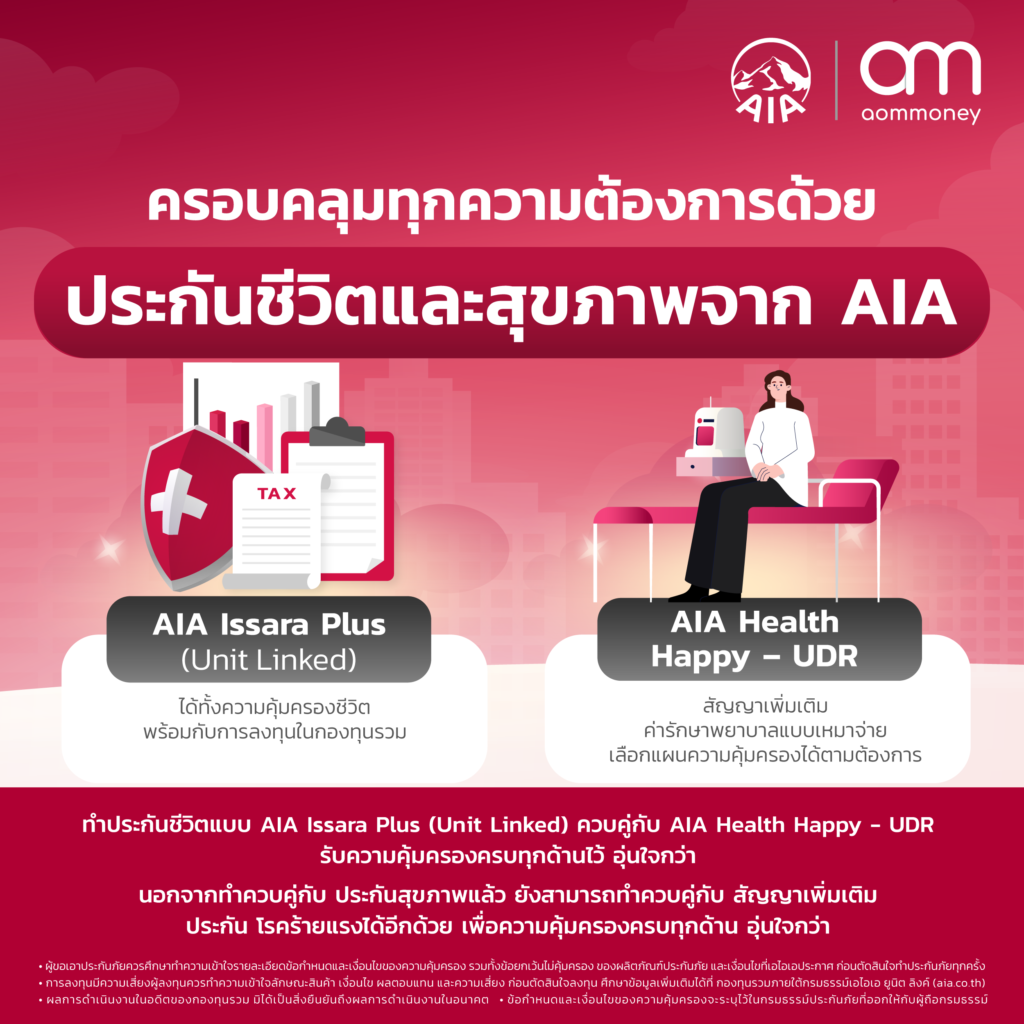 หากเราทำประกันชีวิตแบบ AIA Issara Plus (Unit Linked) ควบคู่กับ AIA Health Happy – UDR